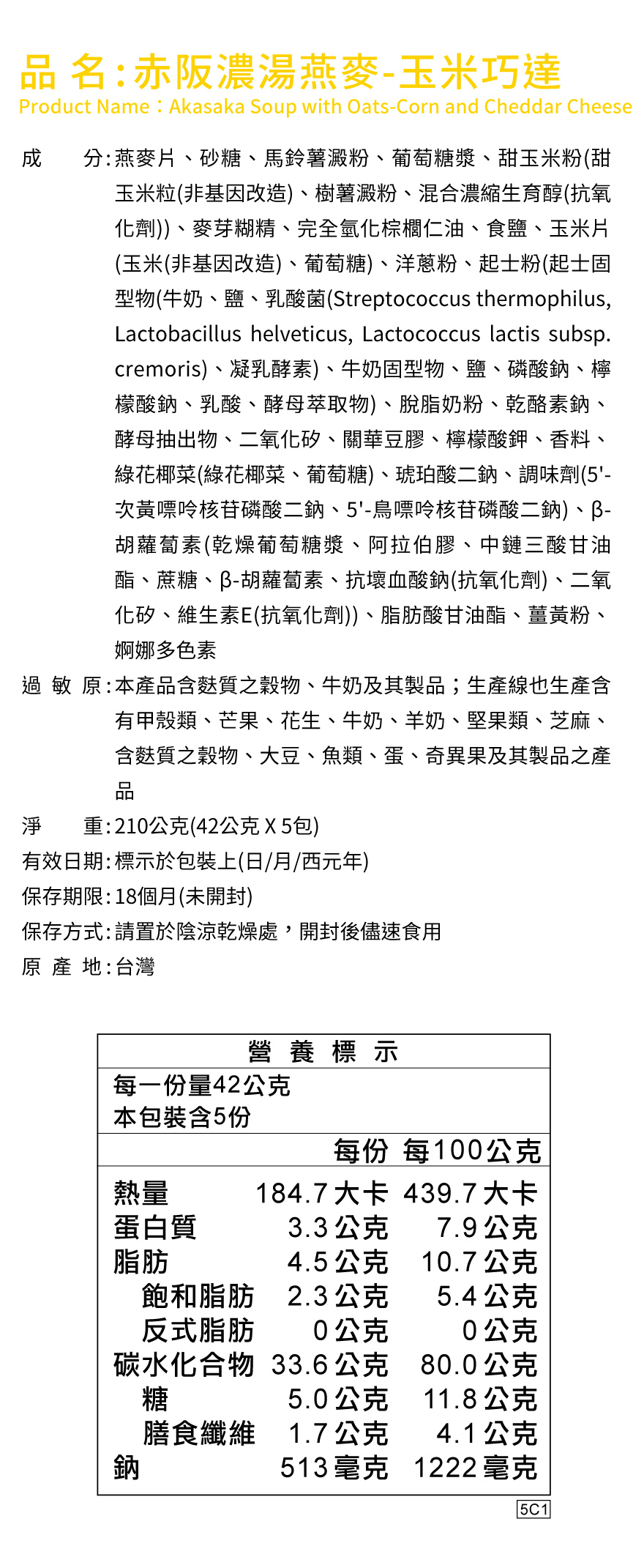◆ 燕麥量50%以上,濃郁感up、飽足感up、咀嚼感up ◆ 每份熱量不到190大卡,享受美食少負擔 ◆ 添加大燕麥片,含膳食纖維,增加美味豐富度 ◆ 日式風味玉米濃郁湯底,搭配切達起司與洋蔥提味,帶出濃郁奶香 ◆ 隨身包設計,攜帶方便 ◆ 即沖即食,輕鬆享受美味 ◆ 植物五辛素